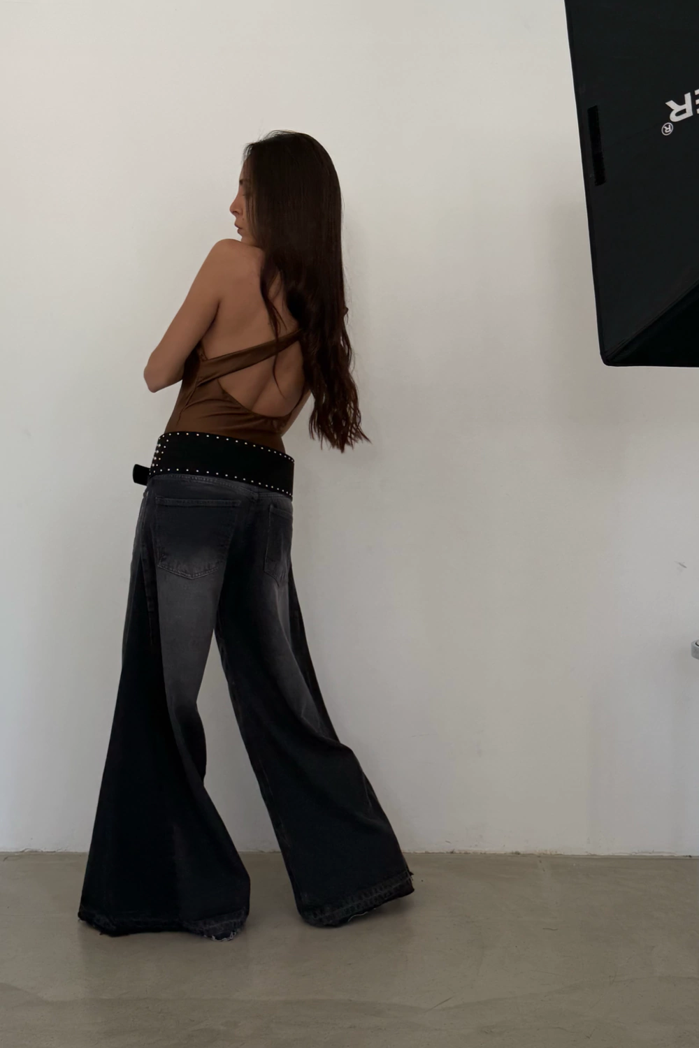 Body básico confeccionado en lycra brillante, su diseño de espalda cruzada realza la figura. Un imprescindible que aporta un toque de distinción y modernidad