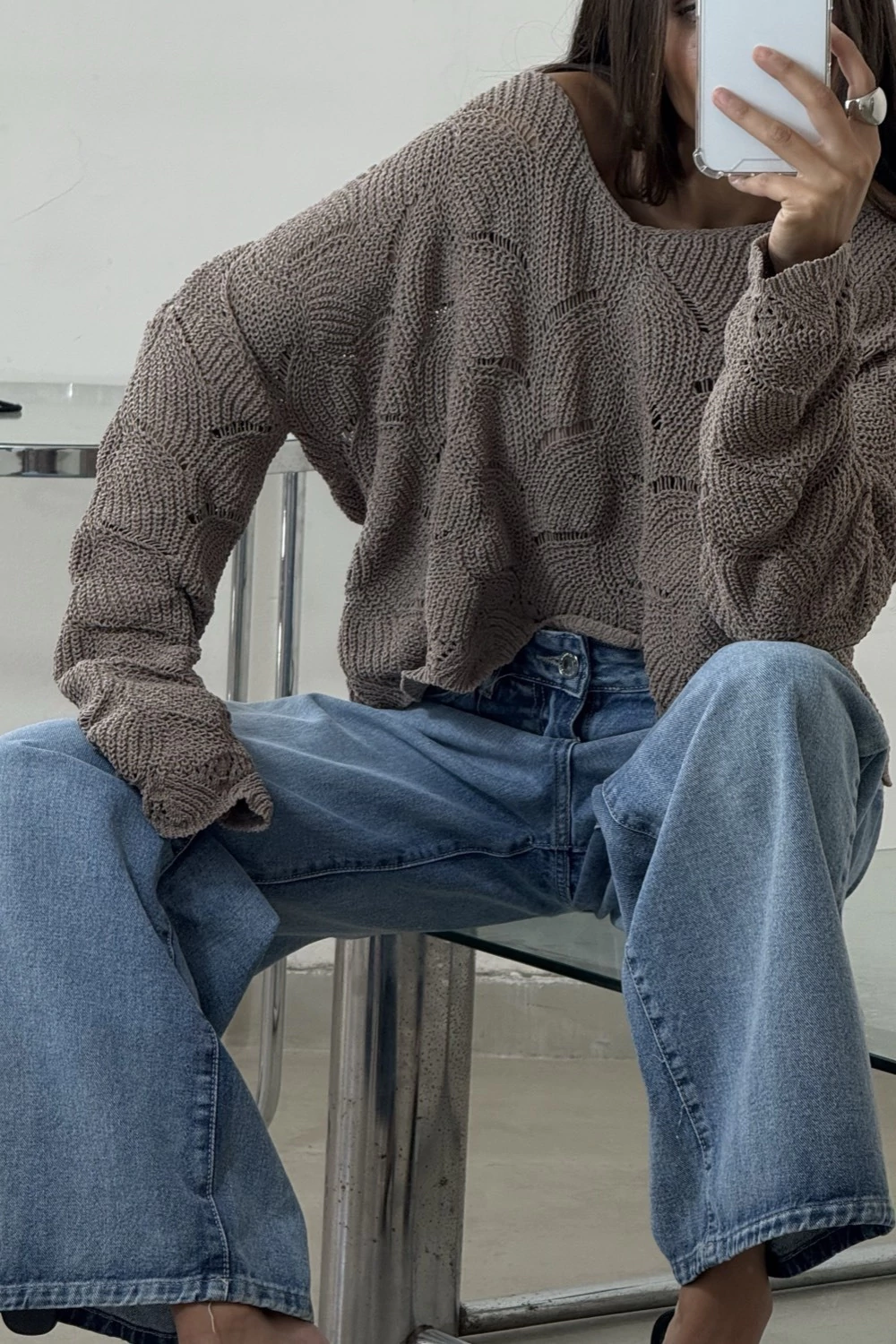 Confeccionado en hilo con diseño calado y textura artesanal. Corte boxy, con mangas amplias y terminación redondeada. Ideal para un look relajado de media estación.