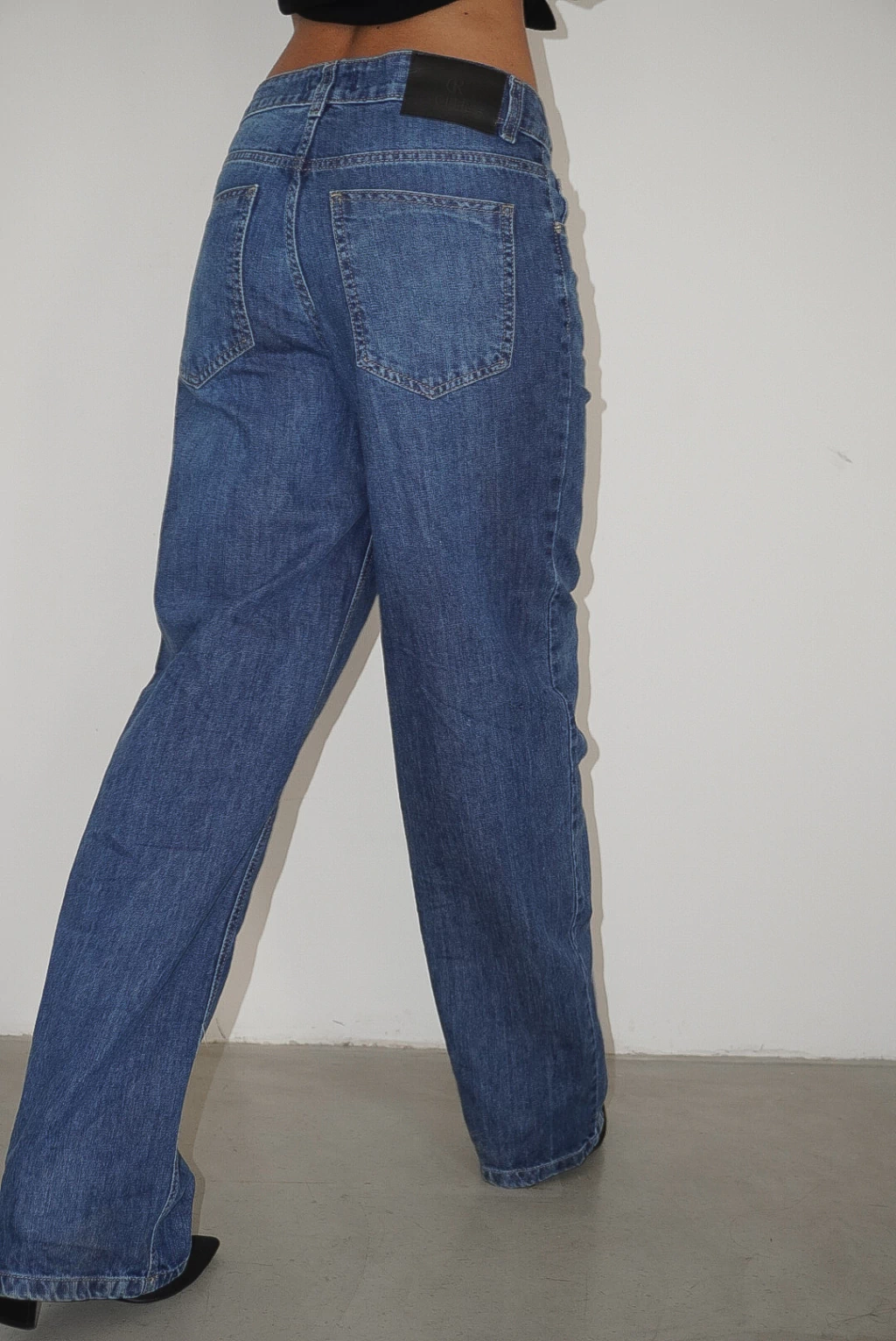 Jean de calce wide en denim rígido. Su costura central en el frente no solo aporta un detalle único, sino que también estiliza y alarga la silueta, logrando un efecto visual elegante y moderno.